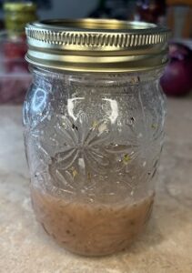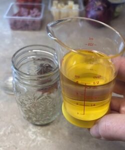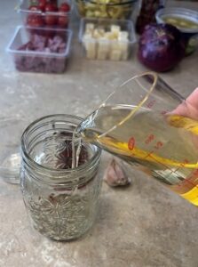 - Add all of your dressing ingredients in a mason jar and shake, shake, shake until well blend.