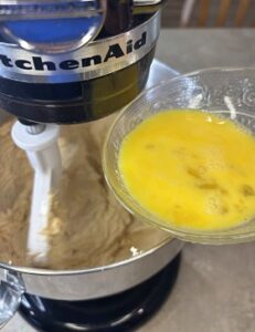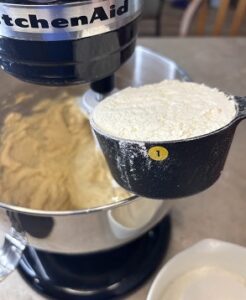 - Mix in the all-purpose flour in half-cup increments, mixing after each addition.