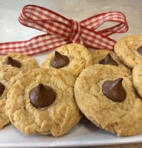 Press the Hershey’s Kisses or chocolate stars, point up, into the middle of your cookie balls, flat side down. They’ll look like flowers or blossoms after they’re baked and that’s why they’re called Cashew Butter Blossom Cookies.