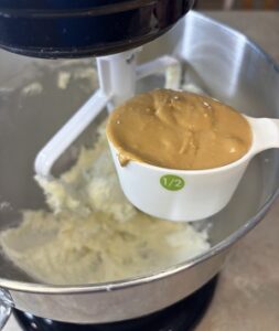 Mix in the half-cup of cashew butter and beat on MEDIUM speed until it is well incorporated.