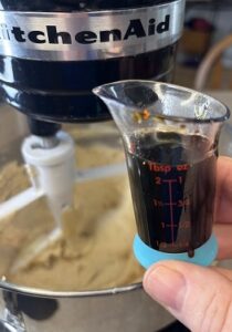 Mix in the vanilla extract and the molasses. Beat until they are well incorporated.