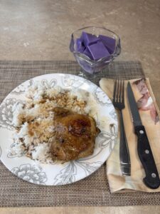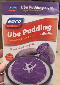 When I went to a Filipino market to look any instant desserts and found a box of Ube Pudding. They recipe called to cook, cool, and cut in squares to serve. It seems more like a gelatin than a pudding.
