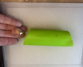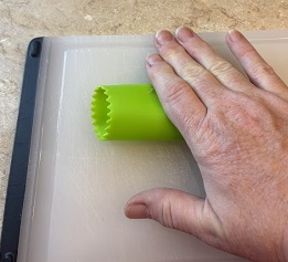 The best way to prepare the garlic is to use a garlic rocking press. Start by rolling the cloves in a silicone tube designed to shed the garlic outer layer.