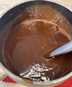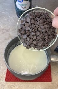 • lowly add in the chocolate chips, stirring until the chips are melted and the mixture is smooth.