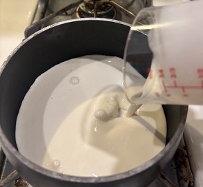 • In a medium saucepan, heat the whipping cream on medium-high heat.
