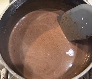 • Stir in the chocolate until it is melted and smooth, then stir in the vanilla and salt.