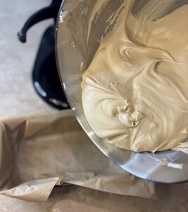 Pour your heavy cream into a stand mixer (or mixing bowl, if using electric beaters) and beat for about 5 minutes until stiff peaks are formed.
