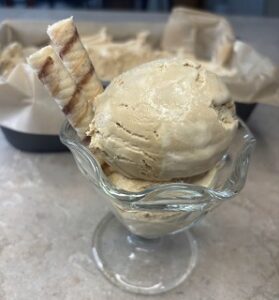 First, the ice cream is super easy, creamy, and delicious. It is a must try! And closely following that, the novel is a fun mystery too. I highly recommend this series.