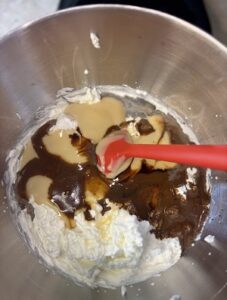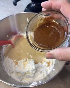 - Add the condensed milk, vanilla, and coffee, and mix until combined.