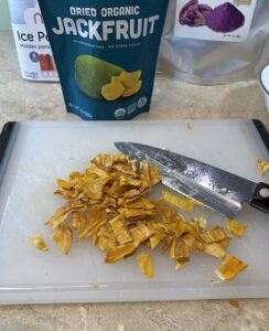 Chopped dried Jackfruit (This tasted very much like dried Mango. If dried mango is easier to find, that would be a good substitution.)