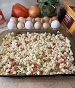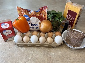 To get these groceries, I did a pick up order. They accidentally gave me hash browns with chopped bell peppers and onions. Since the recipe called to add chopped pepper and onions, I just used what they gave me.