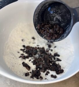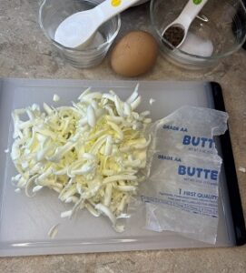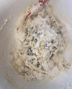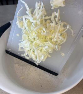 Grate the frozen butter and add to dry ingredients.
