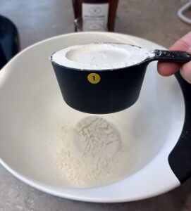 - Meanwhile, combine dry ingredients except for the sugar in one bowl and measure milk into a glass measuring cup.