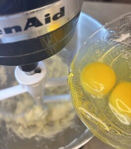 - Add the eggs one at a time, beating after each.