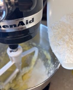 - In another bowl, beat the butter and sugar and vanilla with a mixer until they are light in color.