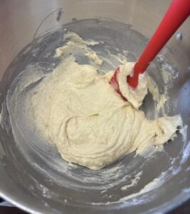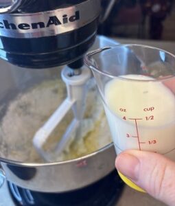 - On low speed, add the dry ingredients in three parts, alternating with the milk until everything is mixed nicely.