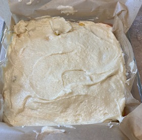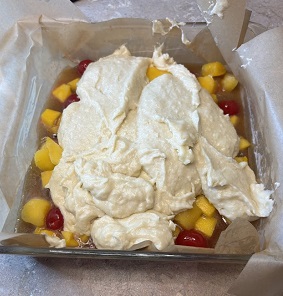 Pour the batter over the fruit