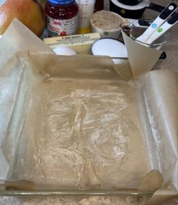 I used 2 mangoes, but I love mango, so next time I might use 3 mangoes and add a bit more butter and brown sugar for the bottom layer.