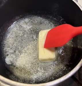 - Melt 4 oz of butter in a small pan.