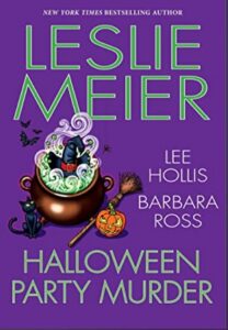 Halloween Party Murder novel with 3 novellas by Leslie Meier available in Kindle, hardcover, and soft cover.
