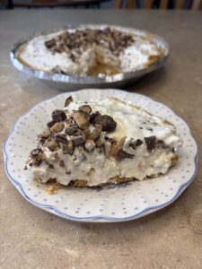 This is a quick and simple, no-bake pie recipe that you can customize to your own personal preference with candy bars or loose candy. I love Heath Bars, so I freeze them, then smash them with a rolling pin to put in my pie. But I have a friend who loves Butterfingers, so she uses those instead. I have also used M&Ms, Reese’s, and Snickers for variety. You name it, I have probably used it. Give it a try with your favorite leftover Halloween candy, and I know your kids will thank you!