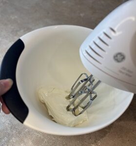 - In a bowl, beat the cream cheese until smooth.