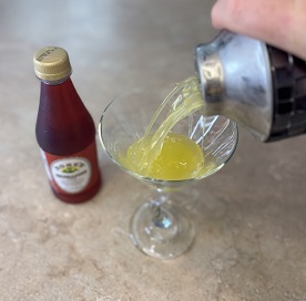 - Strain into a martini glass and slowly pour the grenadine in so it settles on the bottom.