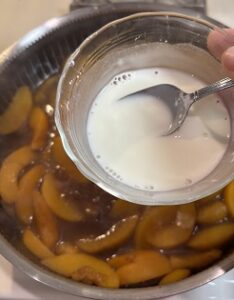 • * If your peach sauce is too runny, mix one tablespoon of cornstarch with two tablespoons of water and add to the sauce to help thicken.