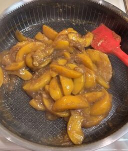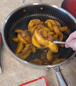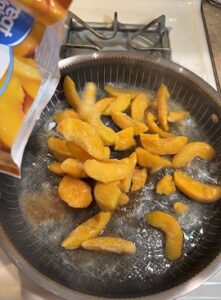 Add the frozen or fresh peaches to the pan.