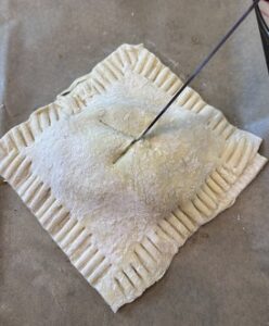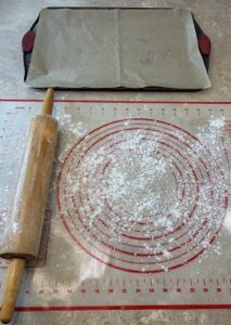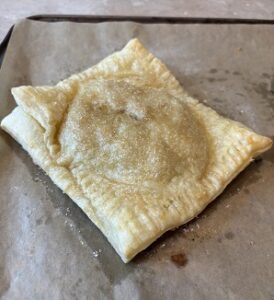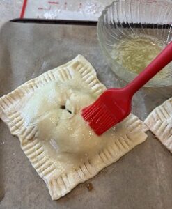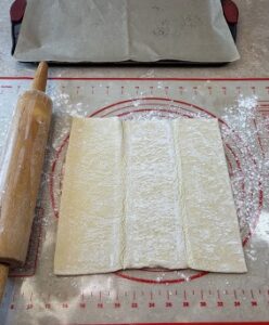 • Once pastry dough is thawed, roll out both sheets and cut into four squares.
