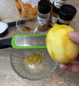 Grate lemon rind and squeeze juice into the mixture.