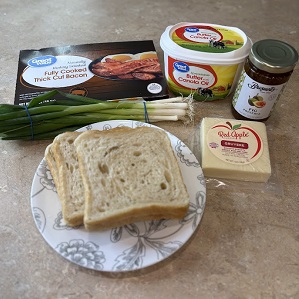 - 4 slices crispy bacon (I used the precooked type and microwaved it until perfectly crispy)