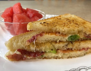 When the bread in the pan is toasted golden brown, carefully flip your sandwich over and toast the other side until cheese is melted and bread is golden brown on that side.
