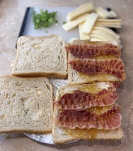 Add the bacon and cheese. Feel free to add a bit more cheese if you desire,