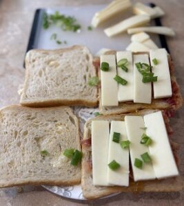 The bread I used to make these sandwiches was homemade sourdough sandwich bread made by my awesome sister. Each week she bakes 2 loaves of tangy, tasty sourdough bread in a sandwich bread pan and she gives me a loaf! She is the best sister, and I am so lucky!